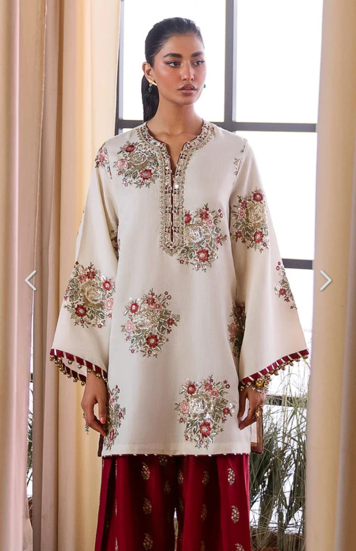 Exude timeless grace with ZOYA, a dhanak 2-piece beautifully embroidered with thread and tilla work, blending festive charm with elegant style. ✨